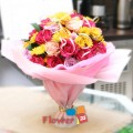 장미(비탈,커플세잔느,아방가르)와 노랑소국,그린소재 한지,스프링리본