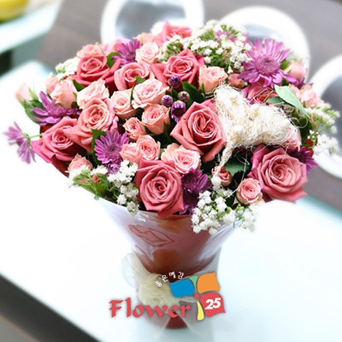 미다바이장미와 샤피아 그리고 보라빛을 어렌지하여 화려하고 품위있는 작품입니다