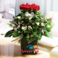 카보넷, 엔젤카네이션, 리시안샤스, 아스파라거스, 소국, 그린소재, 몬스테라, 투명리본