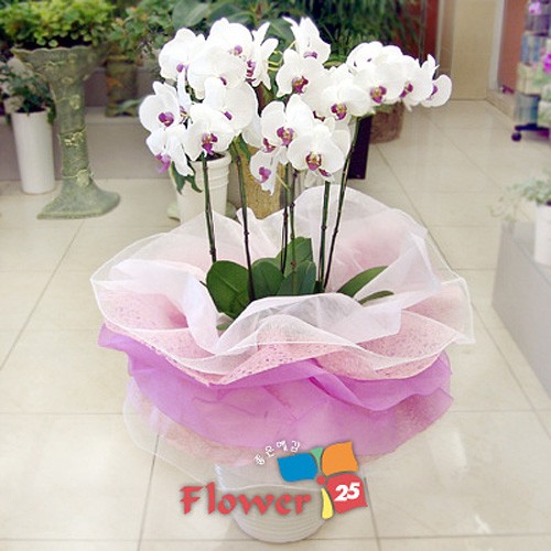 란중에 여왕으로써 길고 굵은 줄기에 크고 아름다운 꽃을 피우는 호접란은 꽃 모양새가 매우 아름다워 축하 선물용으로 좋습니다. 고급 화기에 담아 어느 장소에나 잘 어울립니다.