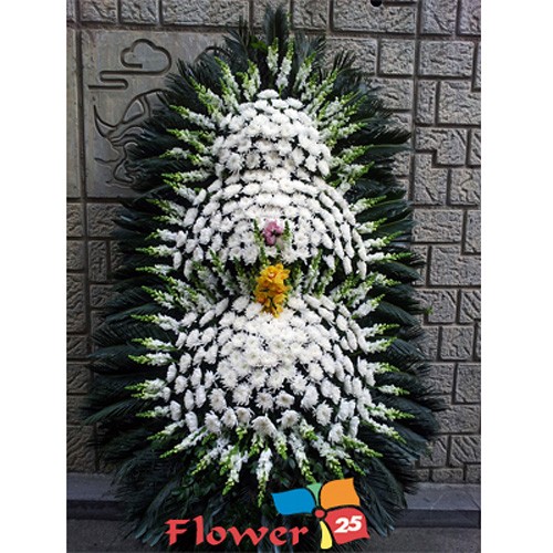 ▶ 소재 ▶ 사이즈 ▶ 작품설명 대국, 금어초, 덴파레, 화이트거베라, 화이트시베리아, 극락조, 소철, 도시루잎 폭 200,180,150cm X 높이 280cm 플라워25에서만 있는 고급 3단화환입니다