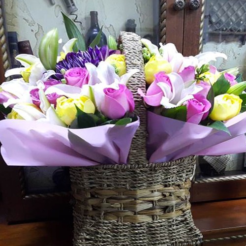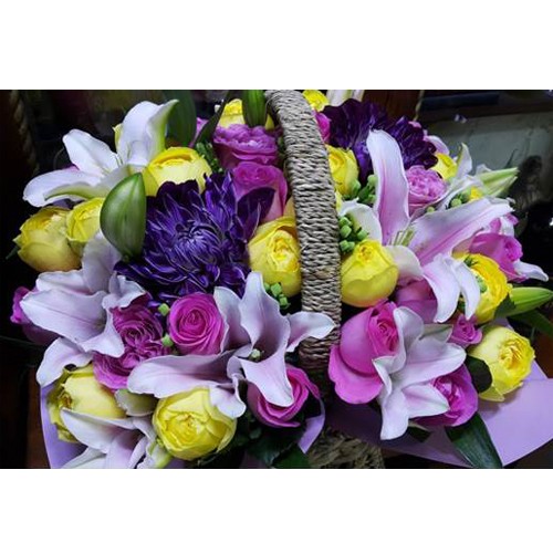 장미 위주로 장식하였으며, 꽃바구니 상품 가운데 제일 많이 찾는 스타일 제품입니다
